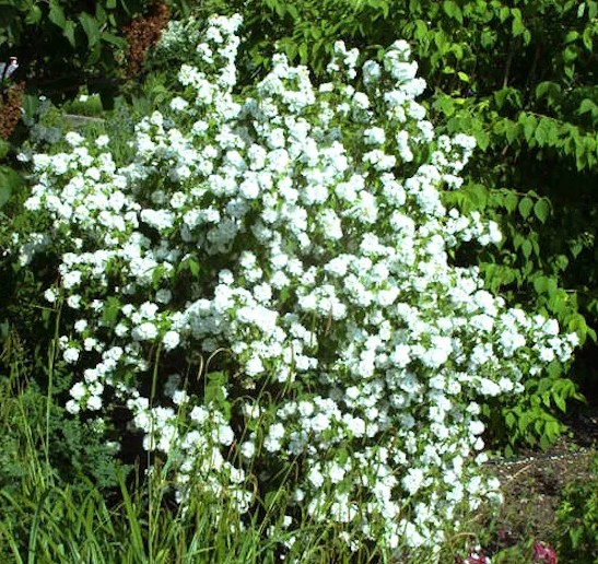 Чубушник Букет Бланк (Bouquet Blanc) – это изысканный сорт садового жасмина, который станет настоящим украшением вашего сада. Этот кустарник привлекает внимание своими крупными, махровыми цветками чисто-белого цвета, собранными в пышные соцветия. Цветение начинается в июне и продолжается до июля, наполняя сад нежным, сладким ароматом, который напоминает запах настоящего жасмина.