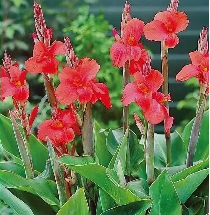 Канны относятся к корневищным многолетникам из одноимённого семейства. Их дикая родина – тропики и субтропики Нового Света, а также Индия и Китай. Стебли у культуры прямые, устойчивые, без боковых ответвлений, густо одеты крупными ланцетными листьями до полуметра длиной. Цветочные кисти рыхлые: первыми раскрываются нижние бутоны, затем волна цветения поднимается всё выше. Палитра оттенков впечатляет – от красного и оранжевого до розового, персикового и комбинированного. Стабильное цветение продолжается с июля до первых холодов.