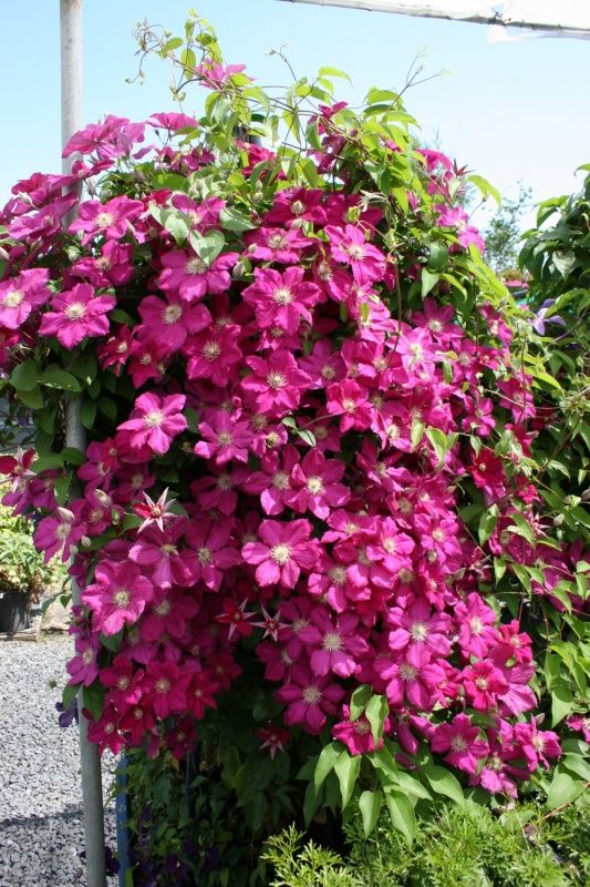 Клематис Эрнест Маркхем (Ernest Markham) — это великолепное многолетнее вьющееся растение, которое станет настоящим украшением вашего сада. Этот сорт клематиса отличается крупными, ярко-красными цветками с бархатистой текстурой, которые достигают диаметра до 14 см. Цветение начинается в середине лета и продолжается до начала осени, радуя глаз насыщенными красками.
