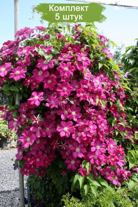 В комплекте вы получите 5 здоровых и крепких саженцев, готовых к посадке. Позвольте клематису Эрнест Маркхем стать ярким акцентом вашего сада и наслаждайтесь его великолепием на протяжении многих лет.