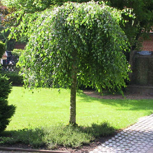 Саженец березы плакучей на штамбе станет настоящим украшением вашего участка, привлекая внимание и создавая атмосферу уюта и гармонии.